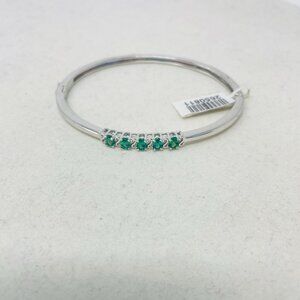KARIS Collection Lab Created Emerald Platinum Bond Brass Bangle Bracelet 5058