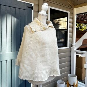 KARIZMA 100% Lamb Wool Cream Knit Poncho Sweater Women Size S/M