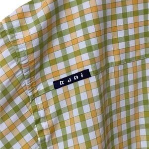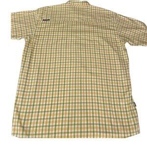 Very nice KK yellow and green plaid men’s shirt. Made from a blend of polyester/viscose. Has that soft feel. Measures 33 inches in length. Pit to pit measures 26 inches. Shoulder to shoulder measures 22 inches. Excellent preowned condition.