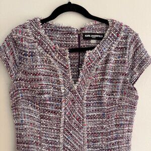 KARL LAGERFELD 8 Boucle Multi-Colored (Pink) short sleeve sheath dress