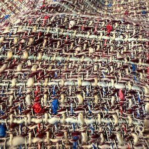 Very pretty, see close up photos for fabric colors, metallic thread, from a distance has a pink tone overall