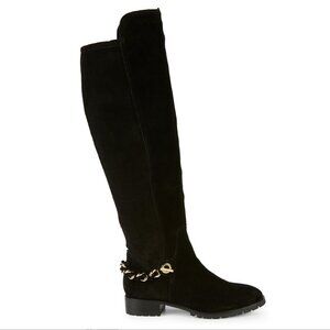 KARL LAGERFELD Black OTK Skylar Boots Suede Stretch Gold Chain Over The Knee