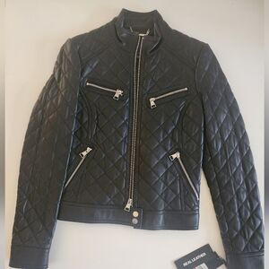 Elevate your style with this chic black quilted leather jacket. Perfect for any occasion, it offers both comfort and elegance.