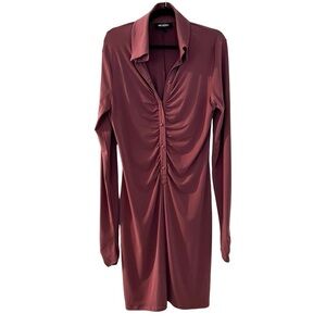 KARL LAGERFELD Bodycon Long Sleeve Warm Brown Midi Dress Sz L