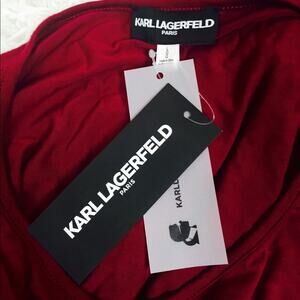 KARL LAGERFELD Burgundy NWT Cold Shoulder Ruffle Blouse Top LARGE Long Sleeve