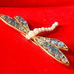 KARL LAGERFELD Designer for Chanel vintage glass cabochon dragonfly brooch