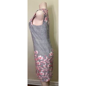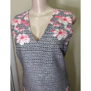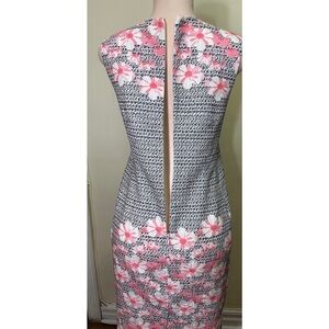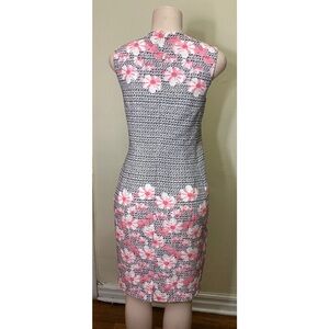 Chic sleeveless dress with a floral pattern. Features pink and black colors.