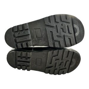 Stylish and durable kids rain boots featuring a playful design. Perfect for rainy days, these black and gold boots offer comfort and protection. Size 7; 8” foot length;