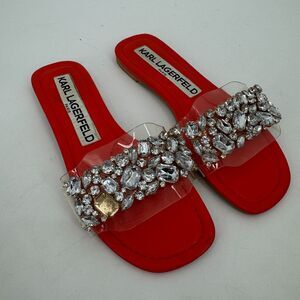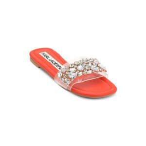 KARL LAGERFELD Mysha Crystal Embellished Fiery Orange Flat Slide Sandals Size 7