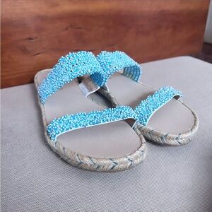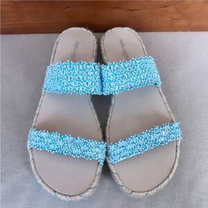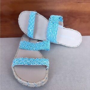 KARL LAGERFELD Nita Light Blue & White Beaded Espedrille Slide Sandals Size 8.5
