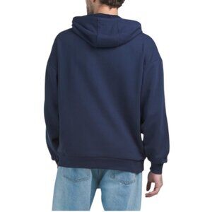 kangaroo front pocket, brand logo patch, french terry interior, fabric provides stretch