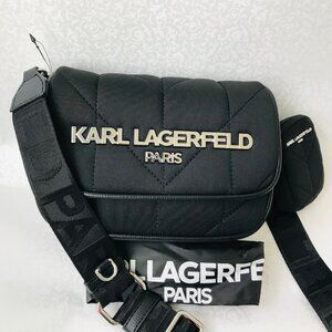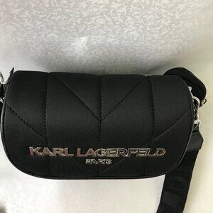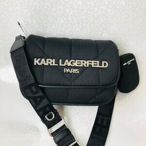KARL LAGERFELD PARIS Crossbody Bag W Airpod Case Black Nylon w Dust Bag New