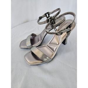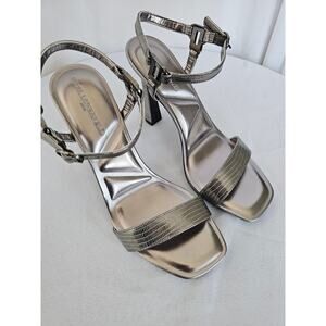 KARL LAGERFELD PARIS Cybil High-Heel Square-Toe Sandals Size 9 Silver NWT