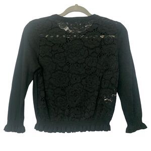 KARL LAGERFELD PARIS Lace Back Ruffle Cardigan