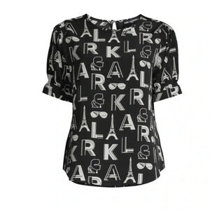 KARL LAGERFELD PARIS | Logo-Print Eiffel Tower Top | Sz XS