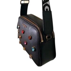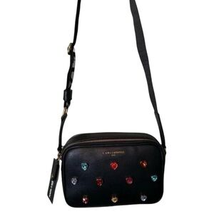 KARL LAGERFELD PARIS Maybelle Black Crossbody Bag Satchel, Rainbow Heart Accents