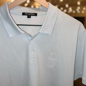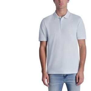 KARL LAGERFELD PARIS Men's Pique Logo Polo Shirt 100% Cotton Pastel Blue XL