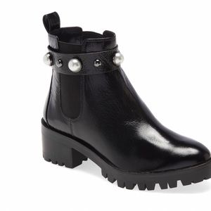 KARL LAGERFELD PARIS POLA Imitation Pearl Leather Chelsea Bootie