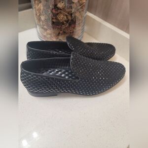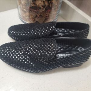 KARL LAGERFELD PARIS VELVET LEATHER BASKET WEAVE LOAFER BLACK 8.5