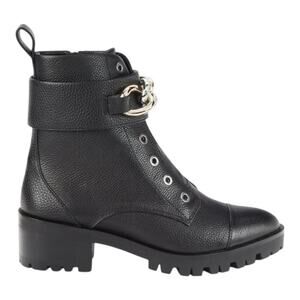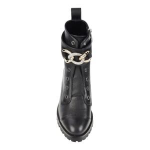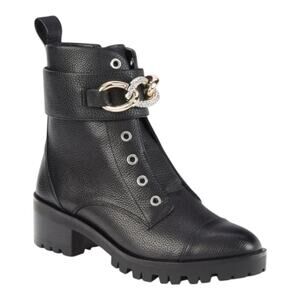 KARL LAGERFELD PARIS Women’s Black Pepper Rhinestone Curb Link Combat Boots