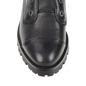Karl Lagerfeld Paris' 'Pepper' combat boots are just what you need for colder days. Made from grain leather, they have a side zip closure with a rhinestone encrusted faux-strap for slipping them on and off with ease. The treaded lug soles will keep you stable while adding a little height.