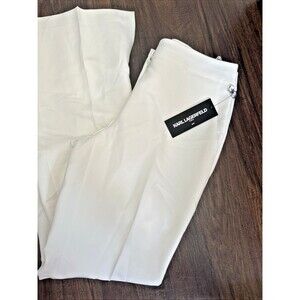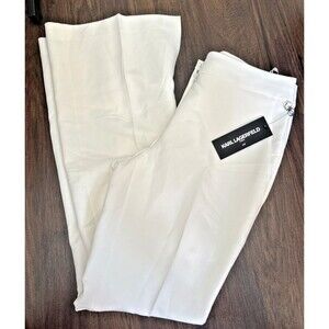 KARL LAGERFELD PARIS Women's High-Waisted Flare-Leg Pants Trousers Soft White 2