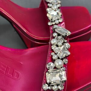 Chunky beads add fresh sparkle to retro-inspired platform heels in the KARL LAGERFELD PARIS Jala sandals.