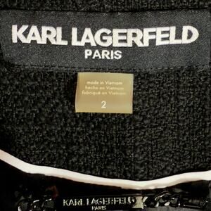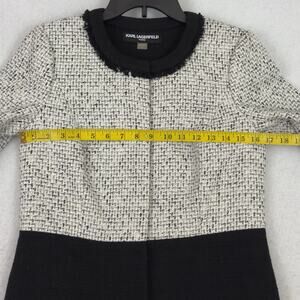 Karl Lagerfeld Paris dress womens tweed A-line cocktail party workwear business professional elegant classic monochrome black white sheath long sleeve lined designer evening chic office attire boutique fashion size 2