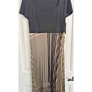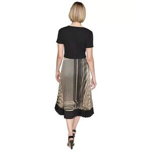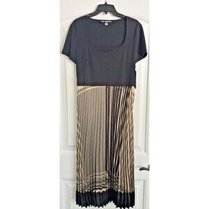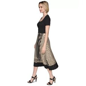KARL LAGERFELD PARIS Women's Square-Neck Pleated-Skirt Dress Black Cream Beige M