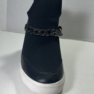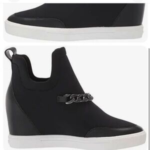 KARL LAGERFELD PARIS,Black Fabric/Leather COVEY WEDGE Sneaker/Bootie/Shoe SZ 5.5