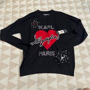 KARL LAGERFELD PARIS Women's Petite Embellished Heart Graphic Sweater