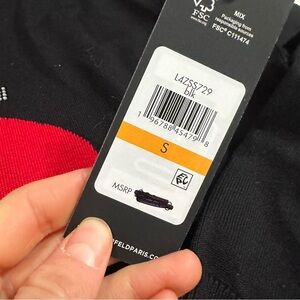 Beaded signature style mixes with a bigtime heart motif and a little French flair in this whimsical sweater from KARL LAGERFELD PARIS.
