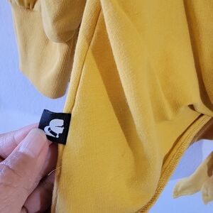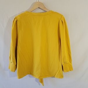 KARL LAGERFELD Paris Emoji Patch Tie Top Sz L Yellow Banded Sleeve Minimalist