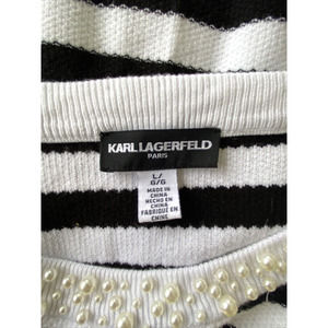 KARL LAGERFELD Parise Black & White Knit Sweater Top Pearl Neckline Size L