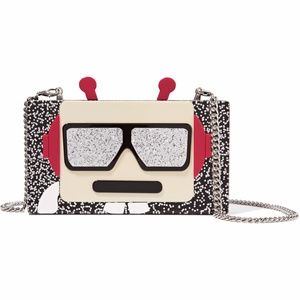 KARL LAGERFELD Minaudiere Robot glittered acrylic box clutch.