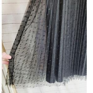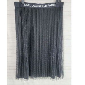 KARL LAGERFELD SWISS DOT SHEER PLEATED MIDI SKIRT IN BLACK, SZ LARGE