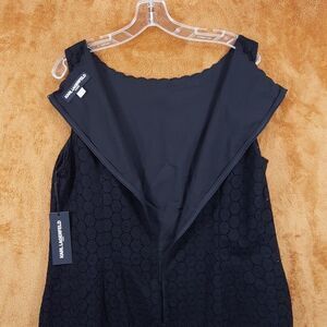 KARL LAGERFELD Sheath Dress Size 14 Black Sleeveless Lace Eyelet White Hem