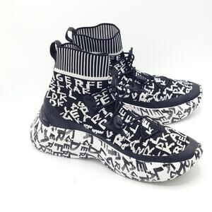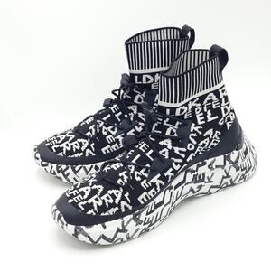 KARL LAGERFELD Skyline Graffiti Pull On in Black/White, women's size 7, featuring a sleek textile upper with bold graffiti-inspired print and a slip-on design for effortless style and comfort. Please check photos for any damage and condition to ensure they meet your expectations. If you have questions or offers, feel free to message me!