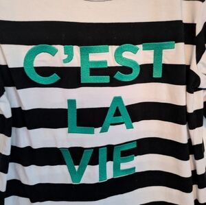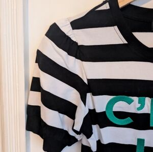 KARL LAGERFELD Striped Puff Sleeve C'est La Vie Tee Size XS