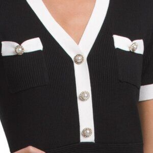 contrast trim, ribbed design, 2 chest pockets, faux button placket, decorative buttons