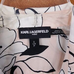 KARL LAGERFELD Top Womens Small Pink Floral Button Up Ruffle VNeck Flower Blouse