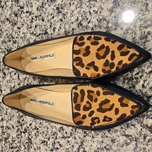 KARL LAGERFIELD PARIS DESTINE LEATHER/COW HAIR UPPER FLAT. SIZE 9.5