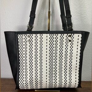 Check out this like-new Karl Lagerfeld bag! It features a beautiful coated canvas woven design and lovely hardware that really stands out. With a convenient snap closure, you'll find two slip pockets inside and one zipper compartment to keep your essentials organized.