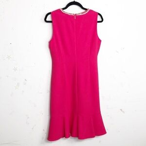 Karl Lagerfeld fuchsia pink structured embellished dress, with embellished neckline fully lined zips up at the back with peplum hem.