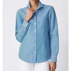 New without tags. Karl Reiman classic women’s pinpoint Oxford button down shirt. Blue & white stripes. Size small. Cotton & linen. See photos for measurements. MSRP $275