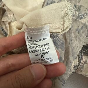 Elevate your wardrobe with this stunning Karlie Sheer Snakeskin Print Ruffled Blouse. The batwing/flutter sleeve design adds a touch of elegance to the cream-colored blouse, perfect for any occasion whether it's a wedding, party, or casual outing. The blouse features a mock neck and zip closure for easy wear, and the ruffle and zipper accents give it a unique and stylish look. Made of 100% polyester, this relaxed-fit blouse is breathable and sheer, making it perfect for the summer, fall, or spring seasons. Hand wash only to keep it looking its best. This cropped style blouse is available in size S, and it's a must-have for any fashion-forward woman.