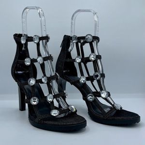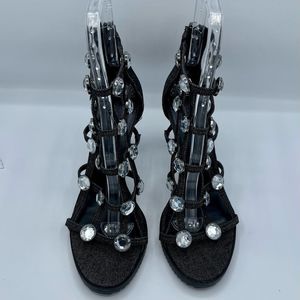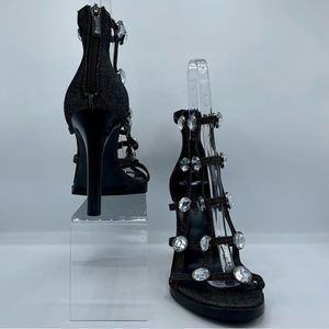 KARL LAGERFELD Beatriz Faux Crystals Heel Sandals in Black Size 10 NWOT