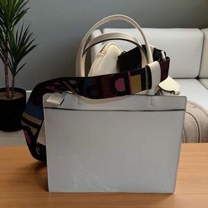 Double leather handles for a great shoulder bag or a removable crossbody strap too