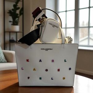 KARL LAGERFELD PARIS NWT MAYBELLE SATCHEL CROSSBODY BAG WHITE