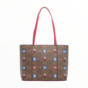 Keywords: Karl Lagerfeld bag, designer tote, cartoon print bag, brown red tote, luxury shopper bag, statement handbag